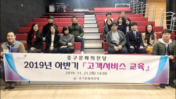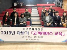 울산 중구문화의전당은 21일 오후 2시 지하 1층 어울마루에서 직원과 공연장 안내도우미 등 38명을 대상으로 '2019년 하반기 고객서비스 교육'을 실시했다.