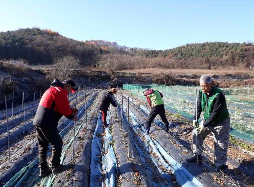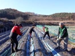생산적 일손 긴급지원반은 21일 추운 날씨에도 갑작스러운 맹장수술로 거동이 불편한 사리면 소재 한 고령농가를 찾아 고춧대 뽑기와 비닐제거 작업에 나서며 굵은 땀방울을 흘렸다.