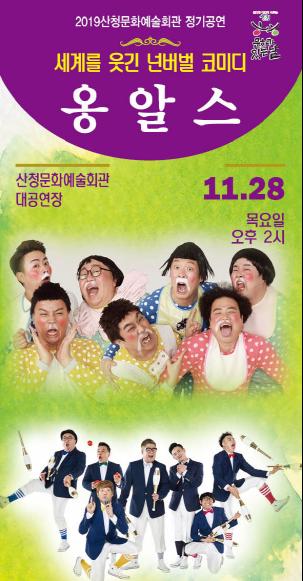 산청문화예술회관은 오는 28일 오후 2시 대공연장에서 ‘옹알스’의 무료공연이 진행된다고 밝혔다.