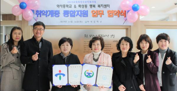 학성동 행정복지센터는 26일 오전 10시 중구 평산4길 10에 위치한 약사중학교 교무실에서 박향 학성동장과 박영희 약사중학교장 등 10여명이 참석한 가운데 공동 사례관리 업무 협약식을 개최했다.