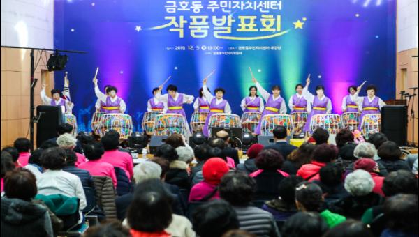 정현복 시장은 12월 5일 금호동주민자치센터 대강당에서 주민자치위원과 수강생, 시민 등 300여 명이 참석한 가운데 열린 2019년 금호동주민자치센터 작품발표회에 참석하여 작품발표회를 관람한 뒤 축하 인사말을 하였다.