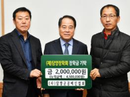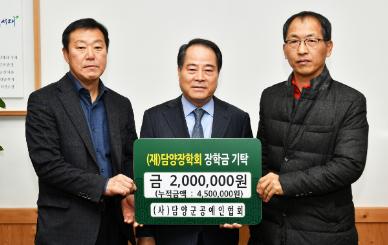 담양군은 최근 (사)담양군공예인협회(이사장 허무)에서 지역인재 육성을 위한 미래천년 장학금 200만원, 불우이웃을 위한 성금 200만원을 기탁했다고 전했다.