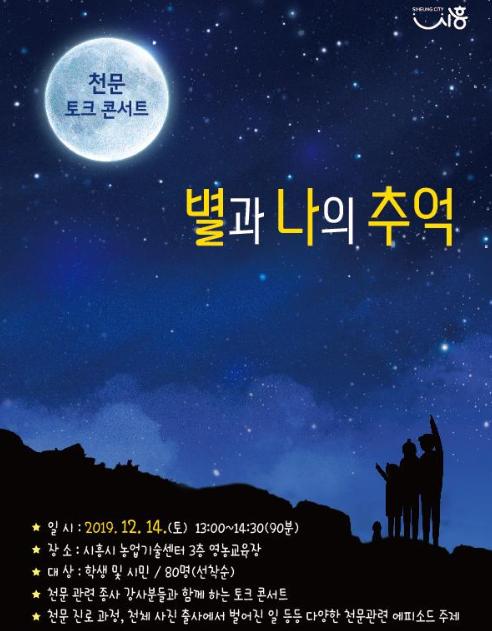 시흥시 농업기술센터(소장 이석현) 천문관에서 12월 연말을 맞아 특별한 행사로 천문 토크 콘서트 「별과 나의 추억」 행사를 개최한다.