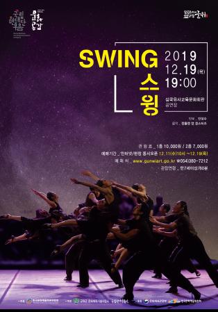 군위군 문화체육시설사업소는 2019년 문화 향연 시리즈의 마지막으로 오는 12월 19일(목) 오후 7시 00분 군위군 삼국유사교육문화회관 공연장에서 [국립현대무용단-스윙]을 무대에 올린다.