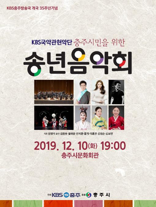 충주KBS는 충주방송국 개국 35주년을 기념해 ‘KBS국악관현악단 충주시민을 위한 송년음악회’를 오는 10일 오후 7시 충주문화회관에서 개최한다고 밝혔다.