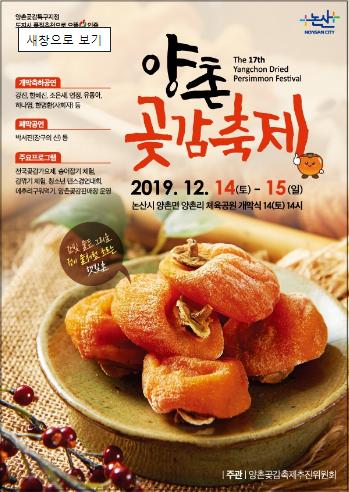 제17회 양촌곶감축제가 ‘감빛 물든 그리움, 정이 물처럼 흐르는 햇빛촌’을 주제로 오는 14일부터 15일까지 이틀간 논산시 양촌면 양촌리 체육공원에서 달콤한 막을 올린다.