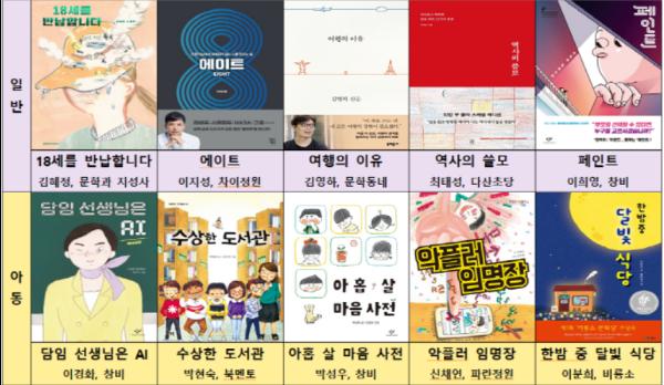 아동분야 후보 도서는 악플러 임명장(신채연/파란정원), 아홉살 마음 사전(박성우/창비), 담임 선생님은 AI(이경화/창비), 수상한 도서관(박현숙/북멘토), 한밤 중 달빛 식당(이분희/비룡소)이다.