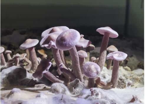 충청북도농업기술원(원장 송용섭)은 우리나라 산야에서 볼 수 있는 ‘야생 민자주방망이버섯’을 국내 처음으로 상자재배에 성공하였다고 밝혔다.