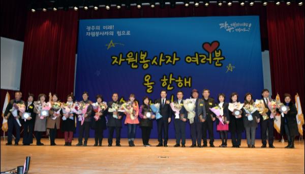 유공자 표창에서는 부덕임 (사)솔잎쉽터 이사장이 대통령 표창을, 전순환 손끝사랑봉사단 팀장, 주재환 광주사랑나눔공동체 대표, 양화자 원불교봉공회광주전남교구 봉공회장이 국무총리 표창을 받는 등 총 37명이 우수자원봉사자로 수상했다.