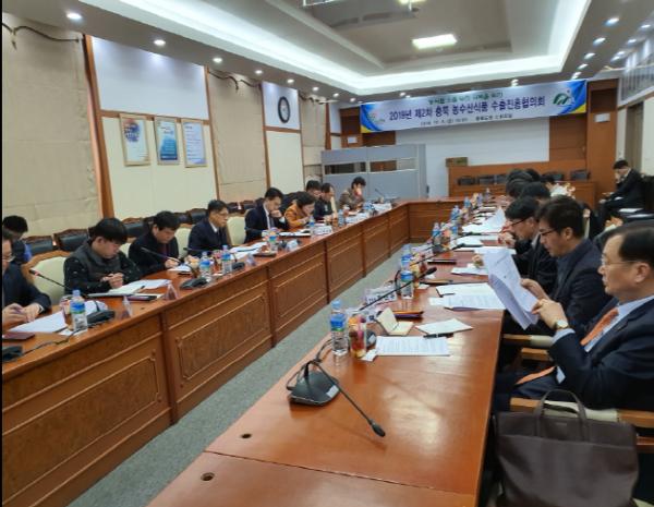 충청북도는 12월 6일 도청 대회의실에서 불안정한 수출 환경을 극복하고 농수산식품 수출을 증대하기 위하여 기업인, 유관기관, 수출전략 전문가 등이 참여한 가운데 ‘2019년 제2차 충북 농수산식품 수출진흥협의회’를 개최했다.