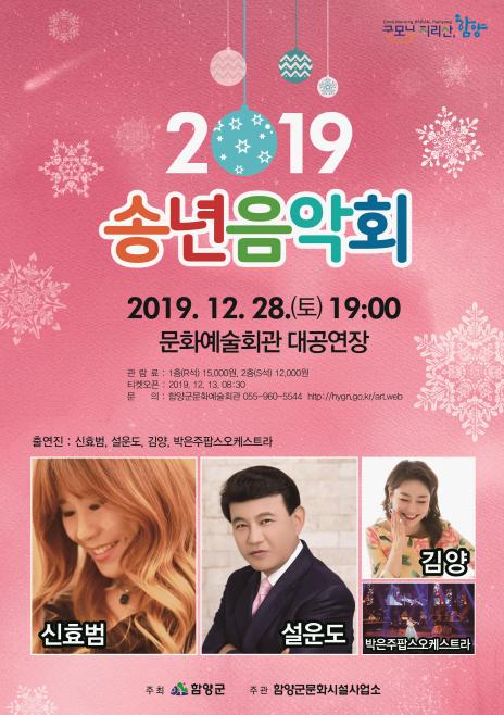함양군은 12월 28일 오후 7시 문화예술회관 대공연장에서 2019년 송년음악회를 개최한다고 밝혔다.