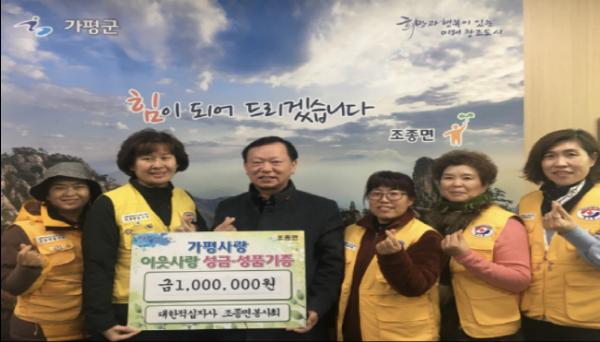 대한적십자사 가평지구협의회 조종면봉사회(이하 적십자 조종면봉사회) 이계경 회장과 회원들은 이웃돕기 성금 100만원을 조종면 행정복지센터에 기부했다고 9일 밝혔다.