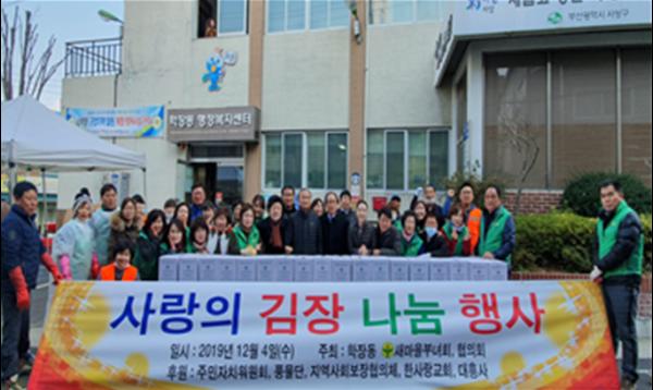 부산 사상구 학장동(동장 김영남)은 지난 4일 새마을부녀회, 새마을지도자협의회 주관으로 ‘사랑의 김장김치 나누기 행사’를 개최했다고 밝혔다.