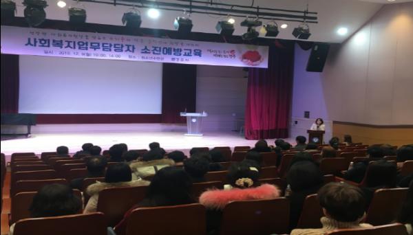 이날 교육은 사회복지직 뿐만 아니라 행정직, 보건직 등 복지업무담당자 모두를 대상으로 하며, 업무공백을 최소화하고 모든 담당자의 적극적인 참여를 유도하고자 2회에 걸쳐 나눠 실시했으며 ‘긍정적이고 선한 영향력을 미치는 사회복지담당공무원’, ‘우리는 왜 복지업무를 지속해야 하는가?’ 등의 내용으로 진행했다.