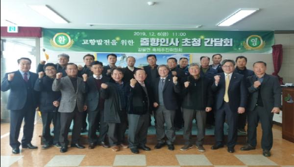 충북 괴산군 감물면(면장 이규서)은 6일 출향인사를 초청해 간담회를 갖고, 고향 발전을 위한 다양한 의견을 나눴다고 밝혔다.