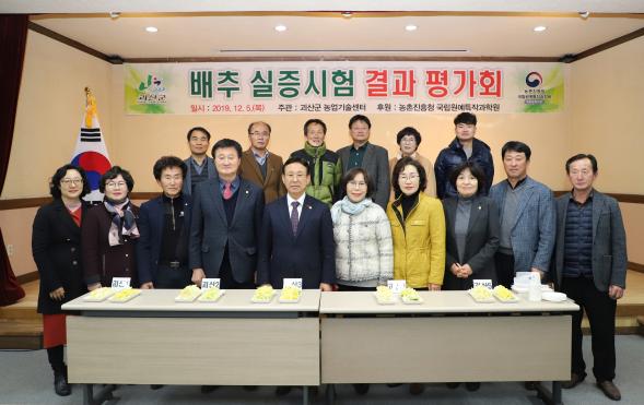 충북 괴산군은 지난 5일 칠성면 소재 농업연구소에서 이차영 군수, 신동운 군의회 의장을 비롯한 배추 재배농가주 등 100여 명이 참석한 가운데 ‘2019년도 배추 실증시험 결과 평가회’를 가졌다고 밝혔다.