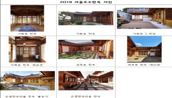선정된 서울우수한옥으로는 전통적인 격식을 갖추고 높은 시공완성도와 짜임새 있는 공간구성이 돋보이는 ‘가회동 L한옥’, 주변환경과 조화로운 재료를 사용하고 기존 한옥을 잘 보존하면서 현대적 편리함을 지닌 내부공간이 치밀하게 구성된 ‘체부동 한옥 예안재’, 안채 사랑채 대문으로 구성되어 전통방식의 한옥형식을 취하고 있으며 기존한옥을 잘 수선하여 현대생활의 기능을 충실히 담아낸 ‘가회동 한옥’, 정교하게 구성된 목구조를 지니며 내·외부 공간구성으로 지형차를 잘 풀어낸 은평한옥마을 2층 한옥인 ‘월문가’ 등이 있다.