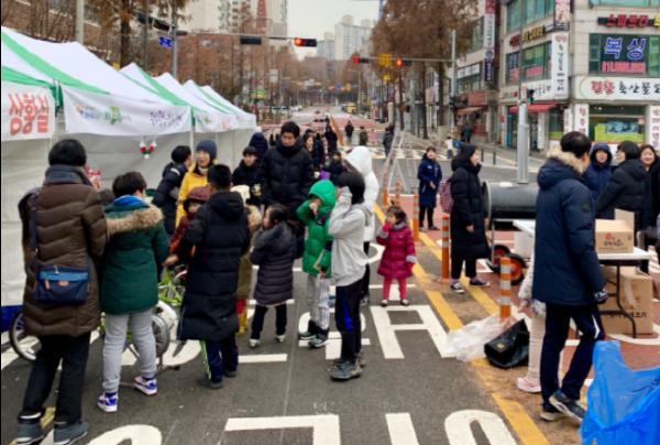 수원시 영통1동(동장 이현희)은 지난 7일, 황곡초교삼거리에서 황골공원에 이르는 도로에서 「영통 차 없는 거리 마지막 이야기 ‘겨울이야기’」를 개최했다.