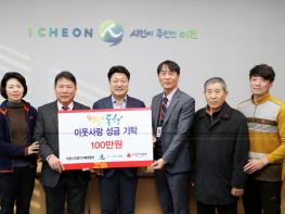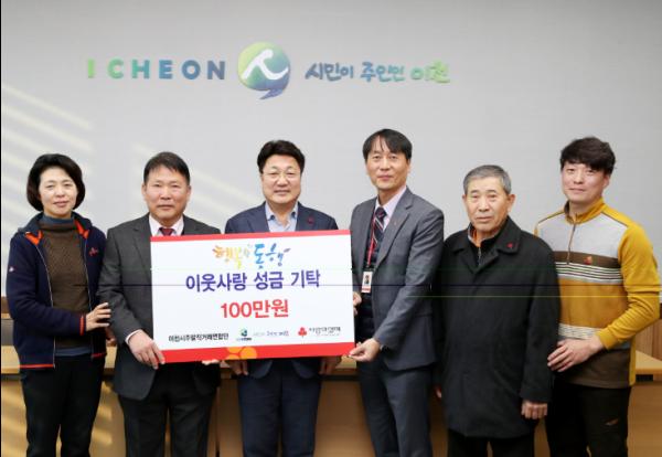 주말직거래연합단(회장 홍종우)은 지역농가들이 일 년 동안 매 주말마다 설봉공원에서 직접 생산한 농산물을 판매하여 얻은 수익금을 이천시 저소득 주민을 위해 사용해달라며 성금 100만 원을 기탁해왔다.