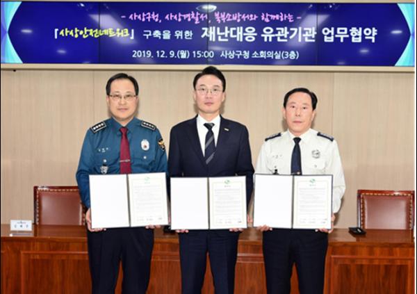 부산 사상구(구청장 김대근)는 지난 9일 사상경찰서(서장 김해주), 북부소방서(서장 서명근)와 함께 각종 재난에 대비하고 협조체계 유지를 위한 ‘사상 안전네트워크’구축 업무협약을 체결했다.