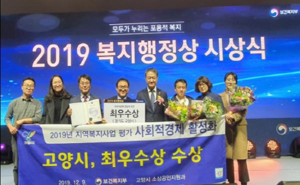 고양시(시장 이재준)는 지난 9일 정부세종컨벤션센터에서 열린 ‘2019 사회적경제 활성화 부문 복지행정상’ 시상식에서 최우수상을 수상했다.
