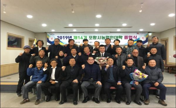 지난 6일 포항시는 농업기술센터 흥해청사에서 ‘2019 농업인대학’ 사과핵심리더, 사과기초, 농식품가공반, 한우반 총 4개 과정에 대해 연간 100시간의 교육과정을 마친 128명에게 수료증을 수여했다.