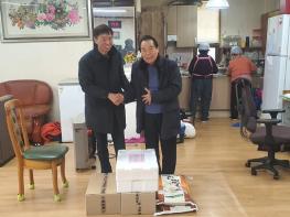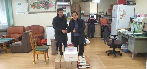 또 후원받은 백미 110㎏(10㎏ 11포), 쌍화탕 12박스, 천일식품(주)에서 기부한 냉동식품 8박스를 함께 전달했다.