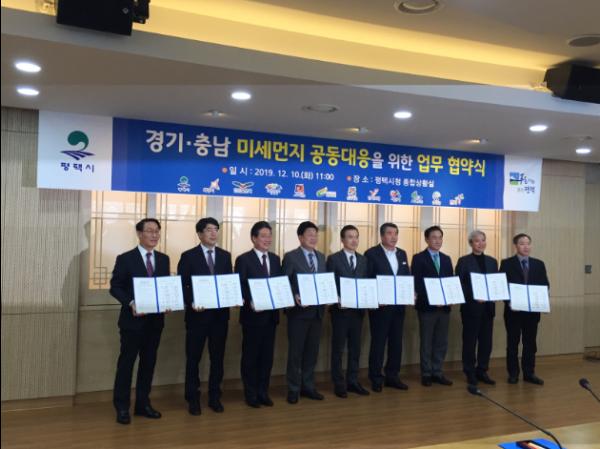 충남 홍성군을 비롯한 환황해권 6개 시·군(당진, 보령, 서산, 서천, 홍성, 태안)과 경기 남부권 6개 시(평택, 화성, 오산, 이천, 안성, 여주)는 지난 10일 경기도 평택시청에서 미세먼지 공동협의체 구성 협약식을 갖고 광역적인 미세먼지 문제에 공동 대응할 것을 다짐했다.