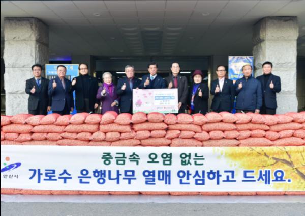 안산시(시장 윤화섭)는 도심 곳곳에서 채취한 은행나무 열매 1천800㎏를 지역 어르신들을 위해 사회복지시설에 기부했다고 13일 밝혔다.
