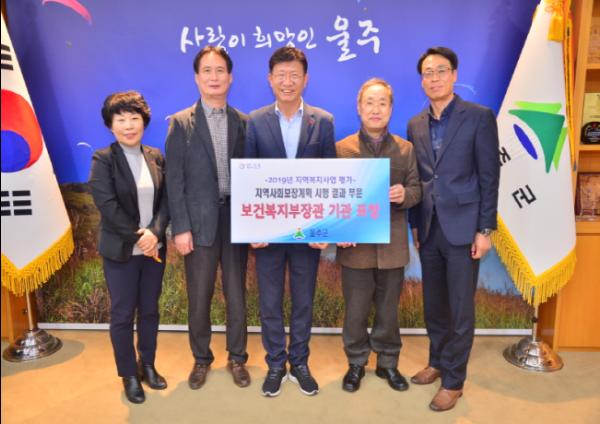 울주군은 11일 보건복지부 주관 2019 지역복지사업 평가‘2018년 지역사회보장계획 시행 결과’부문에서 우수기관으로 선정되어 보건복지부장관 표창과 함께 포상금 2000만 원을 수상했다.
