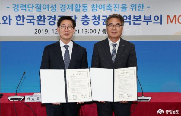 충남도가 경력단절 여성 취업 지원을 위해 한국환경공단 충청권지역본부와 손을 맞잡았다.