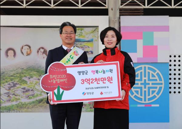 경북사회복지공동모금회가 주관하고 영양군이 후원하는 「희망2020 나눔캠페인 성금모금」 기간은 2019. 11. 20. ~ 2020. 1. 31.까지이다.
