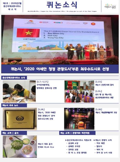 퀴논시 뉴스로는 ‘2020년 아세안 청정 관광도시 부문 최우수도시 선정’이 눈길을 끈다. 지난 1월 16일 부루나이 수도 반다르 세리 베가완(Bandar Seri Begawan)에서 열린 ‘아세아 관광포럼’에서 퀴논시가 청결, 안전, 관광인프라 등 7가지 기준을 충족, 최고의 성과를 거둔 것. 2등은 베트남 후에시, 3등은 베트남 붕따우시가 각각 선정이 됐다.