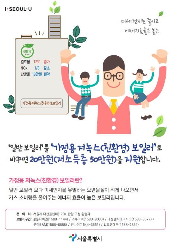 이에 따라 구는 올해 보일러 1대당 일반 가구에는 설치 보조금 20만원을 지원하고 저소득층 가구에는 기존 20만원에서 50만원으로 설치 보조금을 대폭 상향해 지원한다.