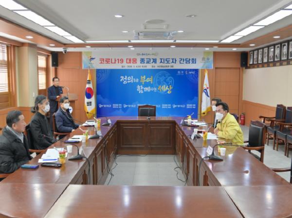 부여군(군수 박정현)은 지난 4일 브리핑실에서 코로나19 확산 차단과 예방을 위해 지역의 종교 지도자들을 초청해 간담회를 개최하고 종교계의 적극적인 협조를 요청했다.