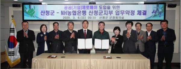 군은 6일 오전 NH농협은행 산청군지부(지부장 권동현)와 ‘공공 제로페이’를 도입·운영하기 위한 업무약정을 체결했다.