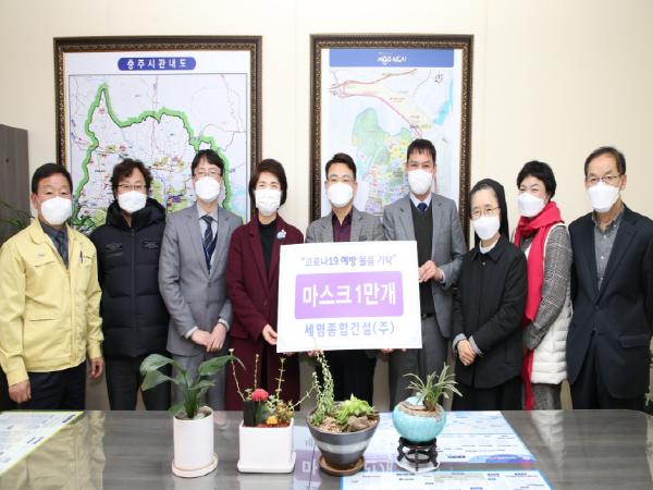 세영종합건설(주)(회장 안영모)은 6일 충주시청을 방문해 지역 내 취약계층의 코로나19 극복에 써 달라며 KF-94 마스크 1만 개를 기탁했다