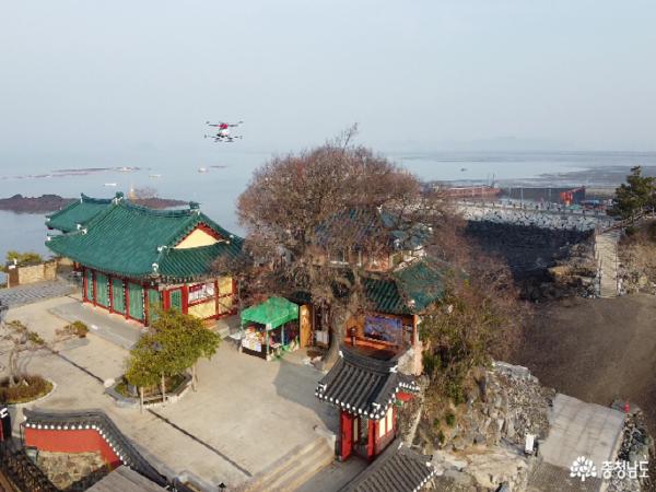 코로나19 확산 차단을 위해 충남도가 도내 야외 관광지를 대상으로 드론 방역에 나섰다.
