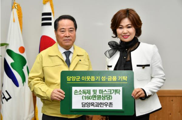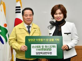 담양군은 담양옥과한우촌(대표 김해란)에서 최근 코로나19 극복을 위해 써달라며 손세정제 및 마스크를 기탁해왔다고 전했다.
