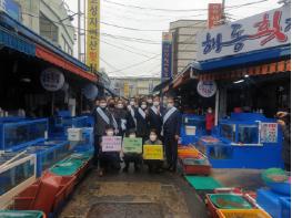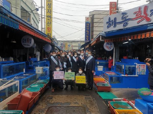 해양수산국 직원 50여명은 코로나 영향으로 소비심리가 위축되어 어려움을 겪고 있는 수산물 시장이 하루라도 빨리 활성화가 되기를 바라며 우리지역 수산물 소비촉진 홍보 캠페인 등을 실시했다.