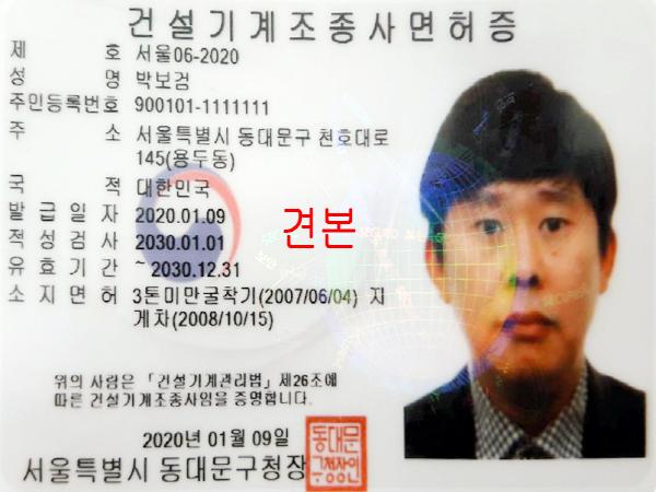 PVC 재질 면허증은 건설기계관리법 개정에 따른 재발급 대상자뿐만 아니라 기존 종이코팅 형태 면허증 소지자도 발급 신청이 가능하다.