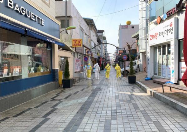 방역 로드맵을 구성해 보건소 방역기동대, 군부대, 축협의 협조를 받아 중심 시가지와 가로변에 방제차를 이용한 방역을 하고 있다.