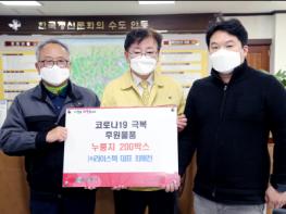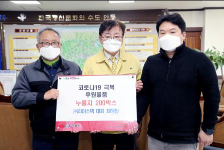 라이스텍 최해천 회장은 3월 9일 코로나19 극복을 위한 후원물품 누룽지, 생강 분말 각 100박스를 안동시에 전달했다.