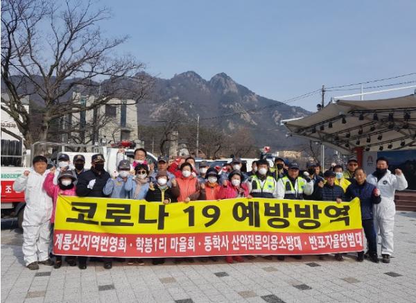 반포면 학봉1리 마을회와 계룡산동학사 상가번영회 등 60여명은 이날 코로나19 예방은 물론 상권 활성화를 위해 동학사 일대 상가와 인근 마을 중심으로 방역 소독을 실시했다.