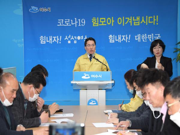 권오봉 여수시장은 9일 오전 시청 브리핑룸에서 코로나19 총괄 대응상황과 시민 안전조치를 상세히 보고하고 지역경제 활성화 대책 등을 발표하는 자리를 가졌다.