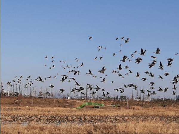 김포시(시장 정하영)는 지난 6일 운양동 1246-1번지 한강야생조류생태공원 낱알들녘에서의 겨울 철새 먹이주기를 완료했다고 밝혔다.