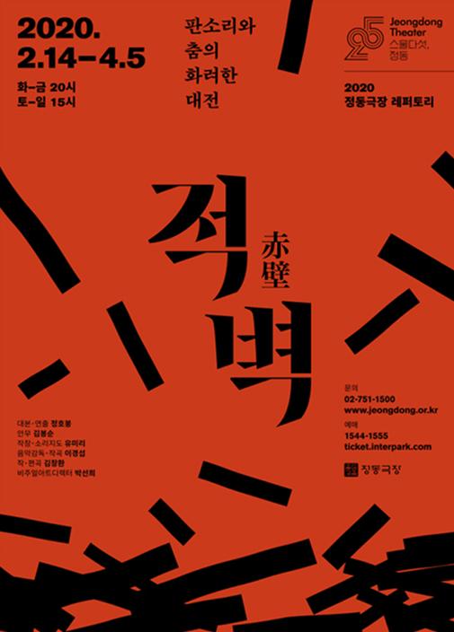 지난 2월 14일 개막한 2020 정동극장 레퍼토리 '적벽'은 올해 4연(2017-2020)을 맞아 한층 더 화려하고 깊어진 무대로 평단과 관객의 좋은 반응을 이어가던 중, ‘코로나 19’ 여파로 공연을 중단해 왔다. 정동극장은 “그동안 코로나 19 감염증 예방을 위해 공연장 정기 소독 확대 실시와 공연장 열감지기 도입, 손 세정제 및 비 접촉식 체온계와 관객 배포용 마스크 준비 등 만반의 준비를 기울여 왔으나, 감염 확진자의 증가 추세와 여러 불안정한 상황이 지속됨에 따라 전국민적 우려와 확산 방지, 관객과 아티스트 보호를 최우선으로 여겨 3월 29일까지 휴연을 연장하기로 결정했다.” 고 밝혔다.