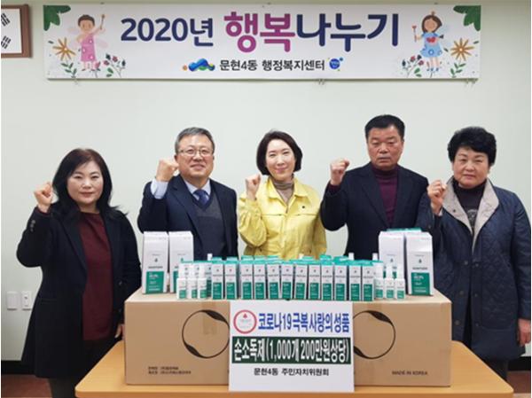 문현4동 주민자치위원회, 코로나19 극복기원 손소독제 전달