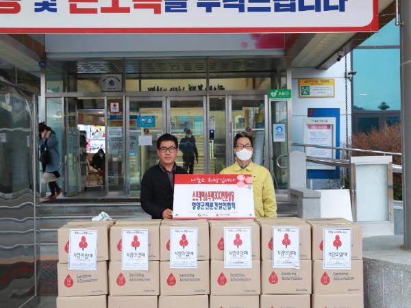 영양군 전문건설인협회(회장 임석규)와 영양레미콘(대표 고희권)은 지난 3월 9일 영양군청을 방문하여 코로나19 확산에 따라 가정과 소규모 사업장 등에서 원활히 작업할 수 있는 스프레이식 소독제 1,000개 등 800만원 상당의 방역물품을 전달하며 코로나19 극복에 동참하였다.