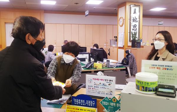 한편 이재근 산청군수는 최근 민원실을 직접 찾아 대민 업무를 담당하는 민원창구 직원들의 노고를 격려하며 “민원 담당 공무원들의 밝은 미소와 친절한 안내가 건강한 산청군을 만드는 원동력”이라며 “앞으로도 밝고 긍정적인 에너지로 산청군의 민원서비스를 책임져 주시길 부탁한다”고 당부했다.